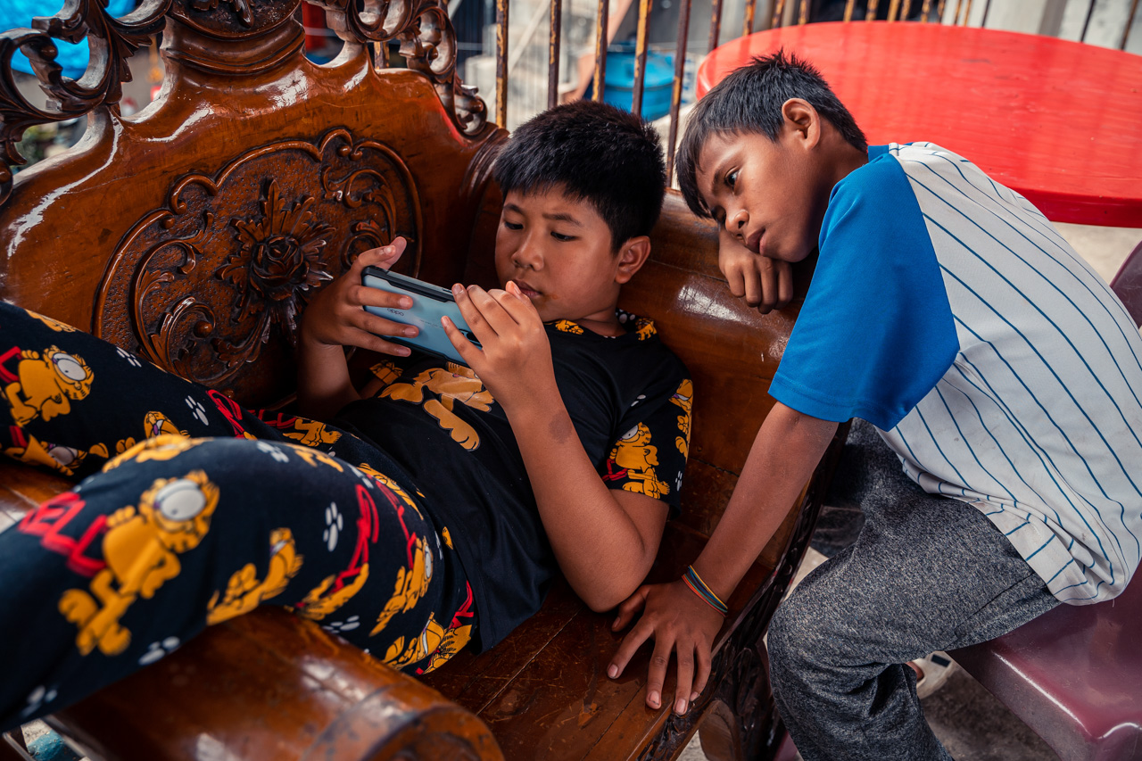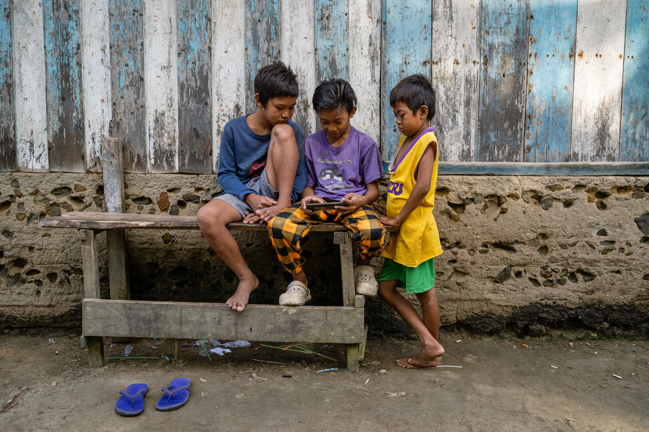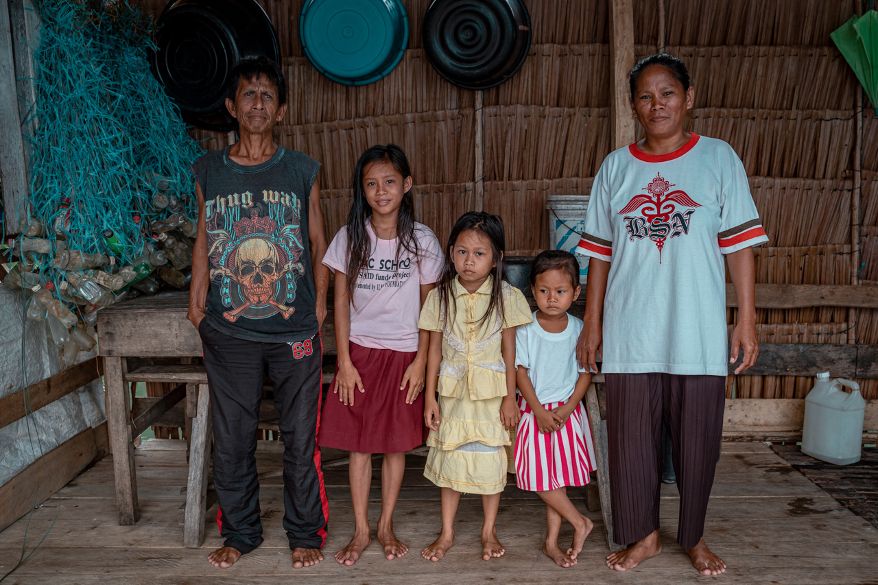 It was a short walk to Sidang’s house. Their home stood over the shoreline, held up by dozens of wooden poles buried into the seabed. Weather-beaten planks, laid out side by side without nails or lashing, formed a walkway that flexed and wobbled under our feet. Sidang shared a single, bare room with her mother, three youngest children, and Parker, a gray, phlegmatic tabby cat. He gave the slightest acknowledgment of our presence before walking away, uninterested.