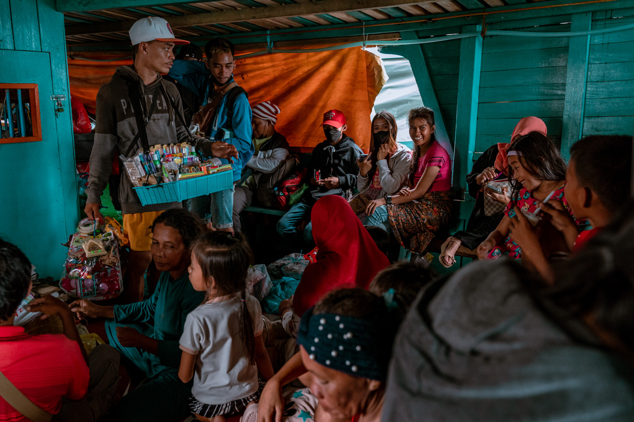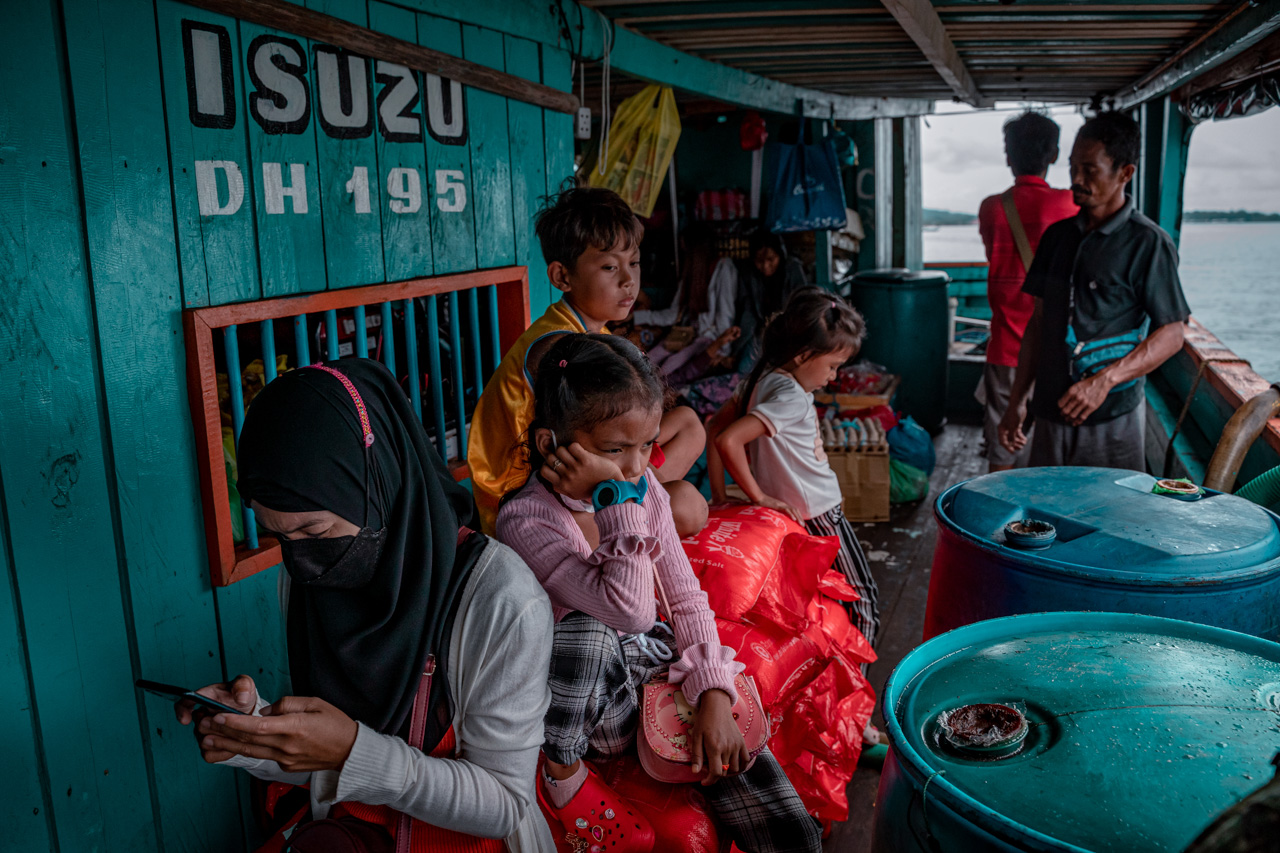 The village chief received us at the port, wearing a polo shirt and shorts. He was a heavy man with drooping eyelids and a stolid temperament. A few hundred meters away, at the edge of a mangrove forest, a roaring speedboat disappeared behind the curve of the island. The chief glanced in its direction, then back at me, his expression unchanged. He already knew what I was going to ask. “Fuel smugglers from Malaysia,” he said candidly.
