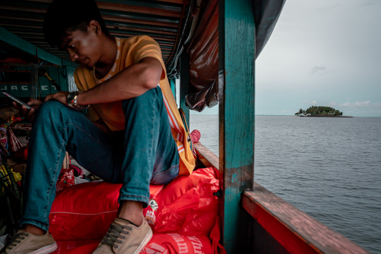 Blue backpack slung over her shoulder, Cansida Arances navigated the port expertly, slipping between men carrying baggage, sacks of rice, and plastic jerrycans filled with fuel. Arances was making her way back to her hometown of Barangay Buan in Panglima Sugala, where she also works as a volunteer teacher. Teacher Sidang, as she is called by her students, had high cheekbones, even, brown complexion and wide-set eyes behind a pair of rectangular glasses. Dressed for comfort, she wore a light blue hijab, a checkered long-sleeved shirt, jeans, and off-white trainers. She climbed a narrow gangplank to board the ferry, pushed past a gaggle of men, and ducked under a low ceiling to enter the lower deck, which was already filling up with passengers.