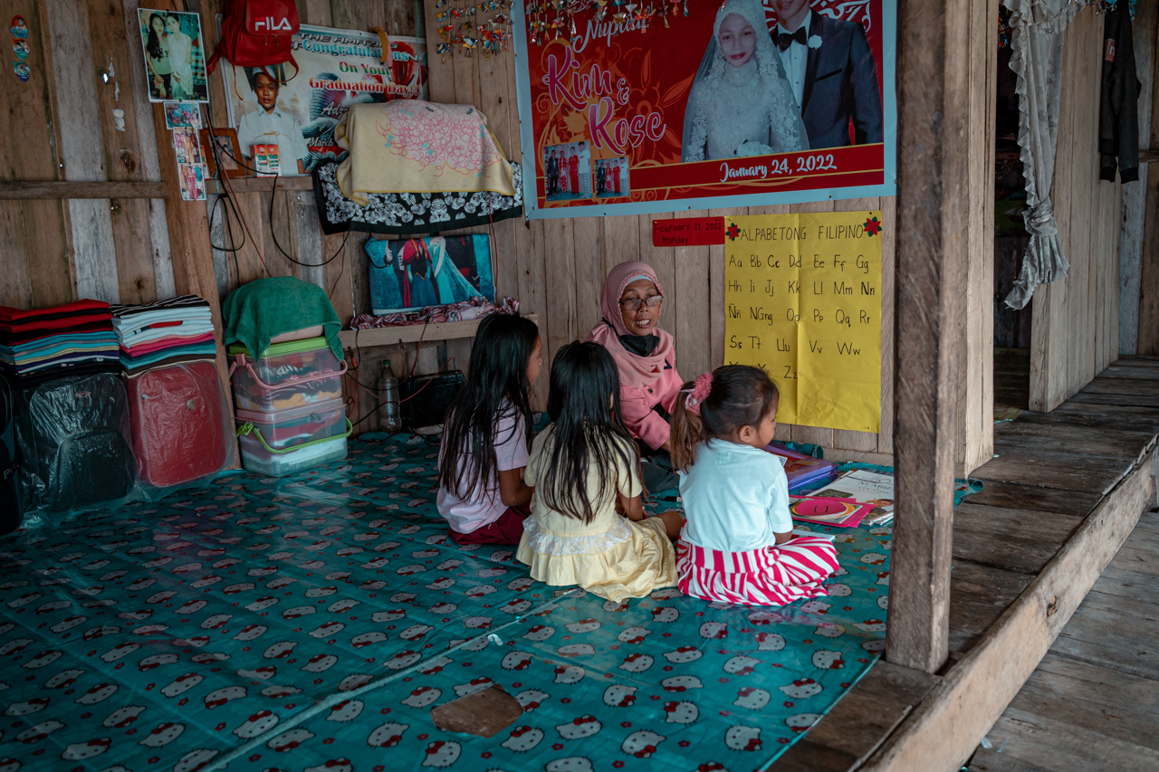 Many of the children in these off-shore communities have never gone to school. Even though there is a public elementary school in the nearby island, where Sidang herself lives, going there was not an option for families who can’t afford the fuel for daily trips on the same boats they used for livelihood. Indeed, most only venture beyond their homes out of absolute necessity, thereby growing accustomed to a life of seclusion. This physical and social isolation has a price, often cited as a major factor in the low level of education in these communities.