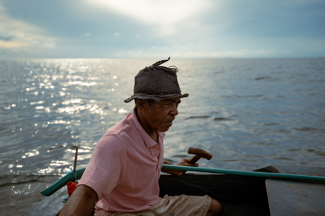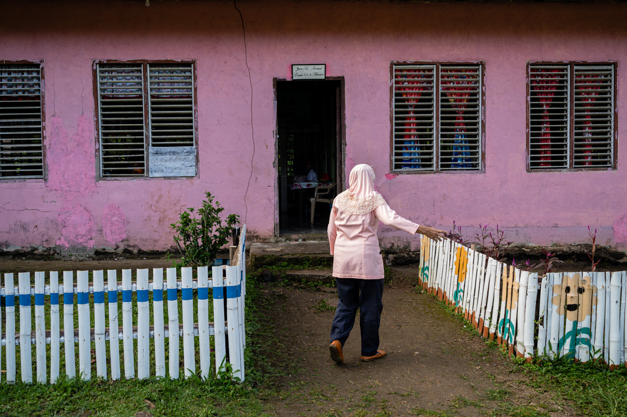 Sidang continues to do her part, one house at a time. We made our way to another stilt house community, our boat puttering under a relentless, unslanted sun. Sidang shielded her eyes from the glare, her pink hijab fluttering softly in the breeze. “I’m a little tired,” she confessed. She took a sip from an almost empty water bottle.